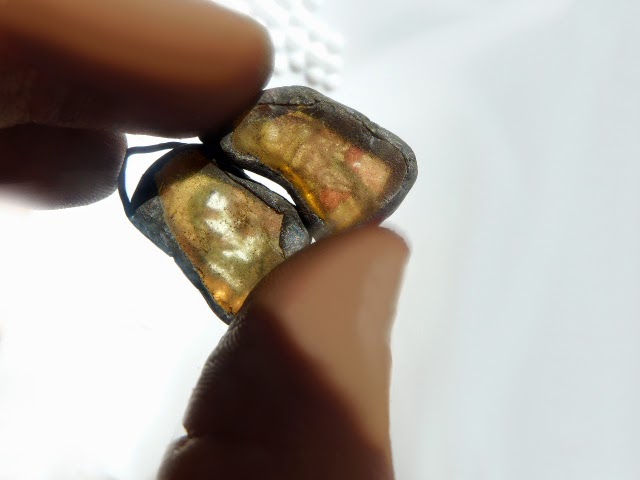 Others didn't fare as well, like this one which has a stamp with a gorgeous image of the three Kings following the star... whatchacallit? In Spanish we say Tres Reyes Magos. Also it said Australia across the bottom, but the thin stamp didn't stand up to the rubbing part of the transfer process and I should've stopped when I was ahead but now I have this glob. Why did I bother to solder it? Maybe I'll scrape off the paper and change it into something else.